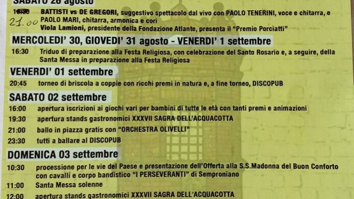 Piatti tipici, musica e intrattenimento, a Cana va in scena una nuova edizione della Sagra dell’Acquacotta