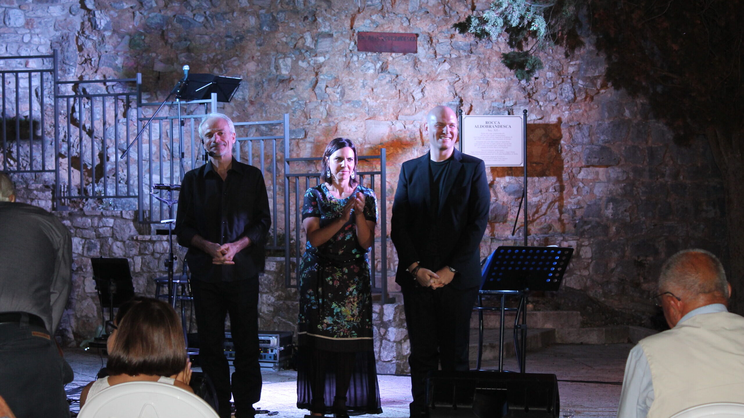 La potente interpretazione dell’attrice Simona Lazzerini e la voce penetrante di Andrea Bonucci accompagnate dalla magistrale chitarra di Paolo Mari hanno dato vita a uno spettacolo emozionante in un’atmosfera sospesa tra sogno e realtà. Gli artisti hanno percorso un viaggio ideale intersecando poesie di Mario Luzi e altri autori e canzoni di Fabrizio De André, avente come stazioni tre grandi aree tematiche: la solitudine, il potere e la guerra, l’amore e la morte.