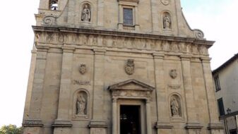 Fu edificata sul luogo di una cappella risalente agli inizi del cinquecento e ulteriormente ingrandita e ristruttata fino alla metà del XVIII secolo, mentre la facciata, impostata su due ordini di colonne binate sovratate da un frontone triangolare spezzato, fu terminata nel 1932.