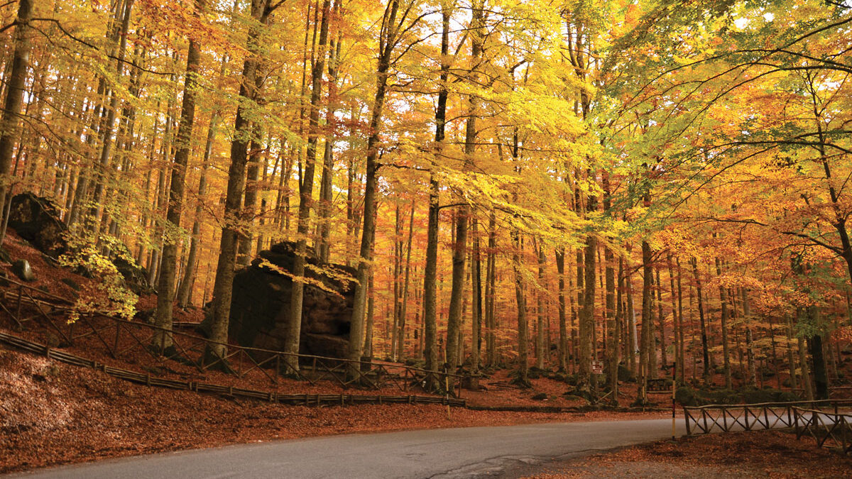 La partenza è da Piazza Garibaldi (il ritrovo è alle 9.30), davanti al Municipio, e da lì il trekking procede verso la chiesina di S.Rocco, attraversando il bel Parco del Gambrinus. Da qui si entra nel sentiero e sarà un vero e proprio tuffo nei caldi colori autunnali dei castagni, dei larici, degli abeti, degli aceri e delle altre migliaia di alberi che è possibile incontrare passo dopo passo, lungo il percorso. Le imponenti formazioni di roccia lavica delle *Mura del Terraio* saranno le le silenziose sentinelle durante tutta la passeggiata. Il percorso è lungo 8 chilometri ed è di media difficoltà, il pranzo è al sacco e si consiglia un abbigliamento comodo, scarpe sportive o da trekking, acqua, snacks, indumento impermeabile per scongiurare i capricci del tempo. La prenotazione è obbligatoria chiamando il (+39) 320 9076376.