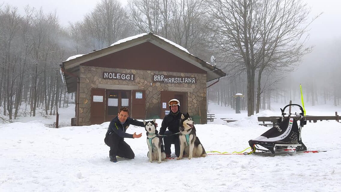 In questo inverno così strano e bizzarro abbiamo scoperto che il monte Amiata innevato ha spinto molti amanti della montagna a dilettarsi in attività sportive e fisiche diverse dal classico sci. C’è chi ne ha fatto di necessità virtù e così le camminate con le ciaspole sono diventate un must per moltissimi turisti e amanti della neve. In aumento anche gli sportivi che hanno iniziato a praticare lo sci di fondo ( proprio all’altezza del Ristoro Marsiliana parte un anello per questa disciplina invernale) e il north walking. Ma non sol questo e per parlare di questa evoluzione abbiamo sentito Alessandro Fallani, che gestisce il Ristoro Marsiglia a circa 1500 metri e soprattutto è un uomo di montagna. “Con Gabriele l’intenzione è quella di creare un evento ad hoc, quando sarà possibile, sia in versione invernale ( skijoring) che in terra battuta (ovvero con un motopattino professionale realizzato apposta per essere trainato). Quando ho fondato il marchio Amiata Sport l’intenzione era proprio quella di realizzare eventi sportivi e comunque portare avanti un’idea di destinazione che punti allo sport in grado di adattare il nostro territorio a tutte le discipline. Al momento essendo fermo con questa attività causa pandemia, mi sono re-inventato grazie al mio piccolo ristoro ma le idee non si fermano, Questa località di montagna attrae sempre persone con energia positiva come Gabriele. Non a caso da 1 settimana è entrato Ottimo come membro della famiglia, ed è capitato Gabriele con i suoi 2 cani Adamo ed Eva cosi mi sono fermato a fare 2 chiacchere e c’è venuta l’idea di realizzare questa evento insieme. Vogliamo stimolare le persone a fare in modo di praticare uno sport insieme al proprio cane e l’Amiata è il luogo ideale per fare questo tipo di sport, specie in questo angolo di montagna, che rimane un ottimo punto per la sua particolare conformità”.