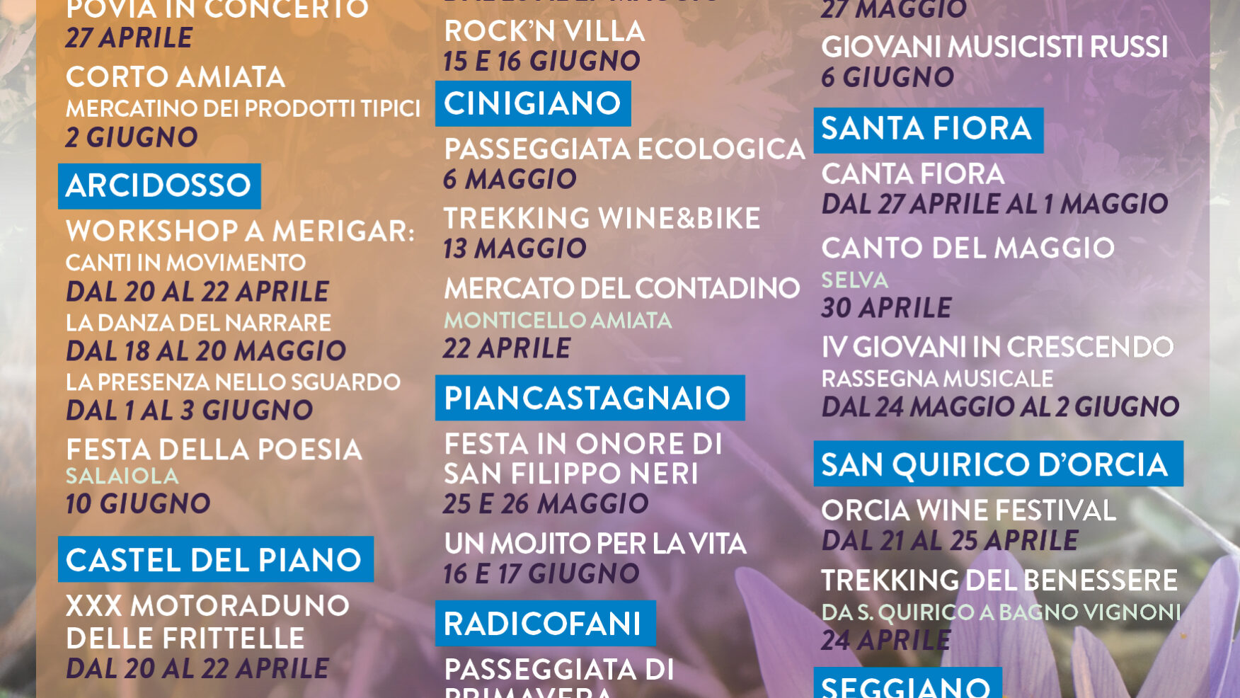 Eventi che richiamano attività all’aria aperta, degustazioni di prodotti tipici del territorio e le tradizioni popolari. Ecco cosa fare sull’Amiata nei mesi di primavera.