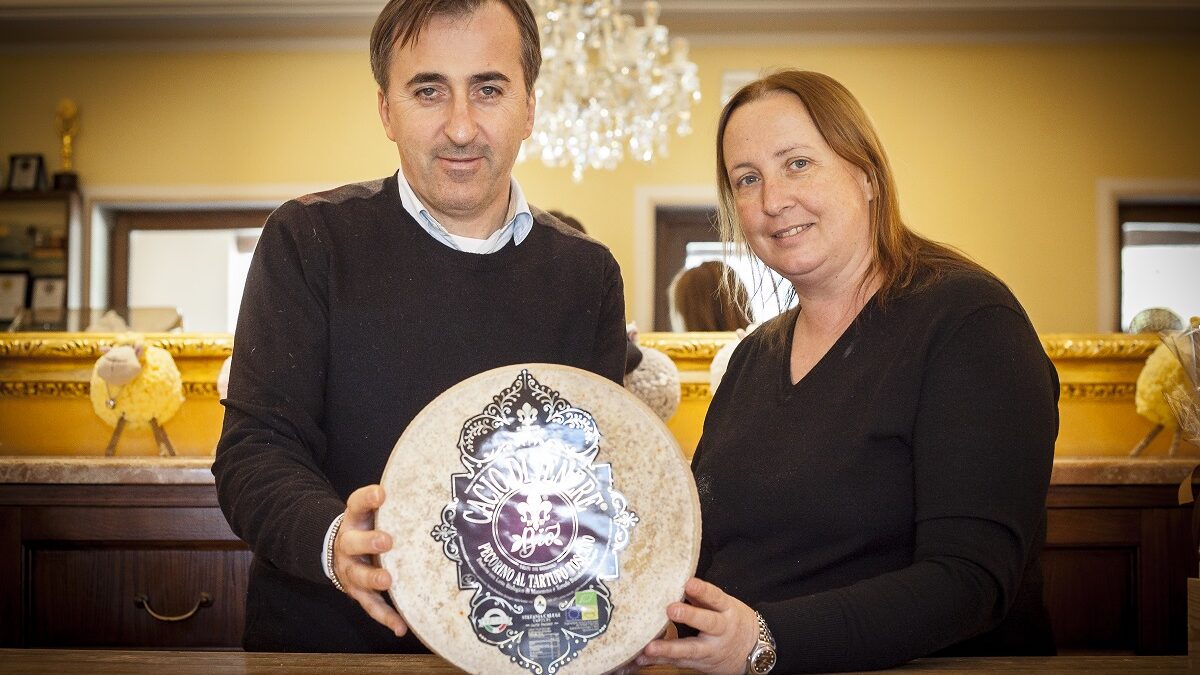 Le caratteristiche del Cacio di Venere. Il pecorino de Il Fiorino che ha conquistato la medaglia d’oro è realizzato con latte biologico di altissima qualità, tutto proveniente dai pascoli nei dintorni del caseificio. “Sembra che Venere – spiega Angela Fiorini, che insieme al marito Simone Sargentoni guida il caseificio maremmano – avesse la pelle bianca come il latte. Partendo da questa suggestione abbiamo unito il colore seducente della dea dell’amore con i sapori del miglior latte di Maremma e gli aromi di uno dei frutti più preziosi della nostra terra toscana: il tartufo bianchetto bio dell’azienda di Stefania Calugi, che è tritato finemente e in piccole scaglie per dare più consistenza e gusto”.