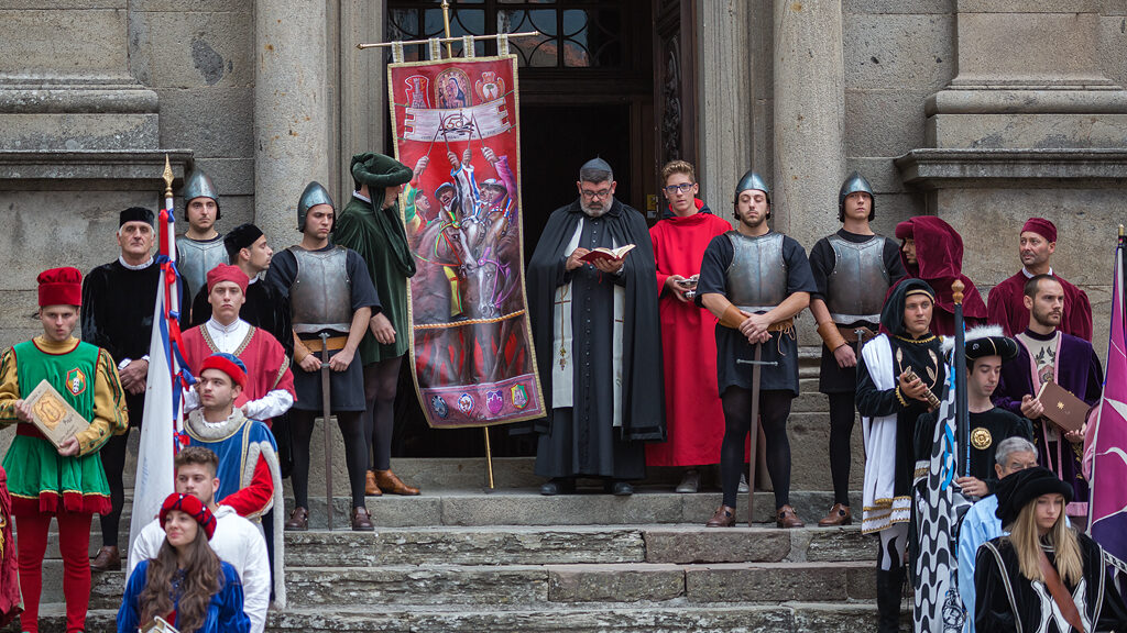 Domenica a Castel del Piano è stato presentato il Drappellone dedicato al Palio delle Contrade di quest’anno