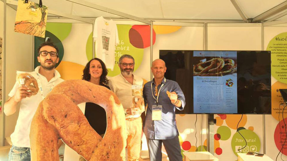 Il forno è situato dentro al paese di Roccalbegna ed è un forno storico. Le specialità sono i biscotti salati e altri prodotti realizzati secondo antiche ricette. Questo biscotto racconta Libero Contri, il proprietario del panificio risale al Medioevo. Le nonne lo sfornavano in occasione di matrimoni, feste e battesimi. Col tempo è diventato un alimento di uso quotidiano. Le origini di questo biscotto dalla forma simile a un otto, intrecciata ad abbraccio e chiusa nelle tre giunture, si perdono nel Medioevo. La produzione è sempre stata familiare e la ricetta custodita gelosamente dalle donne del paese di Roccalbegna e tramandata di madre in figlia. Il biscotto salato oggi gode di importanza proprio per la sua qualità e da due anni è divenuto presidio Slow Food
