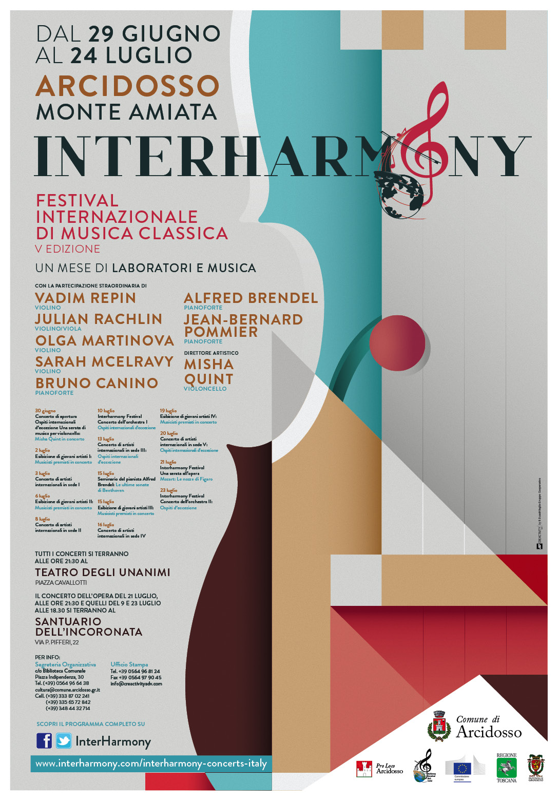 Per Arcidosso (GR) rappresenta l’appuntamento culturale dell’anno e per i giovani musicisti che hanno la possibilità di partecipare è un prestigioso palcoscenico dove è possibile esibirsi e accrescere il proprio livello artistico. E’ all’interno della suggestiva cornice medievale del paese amiatino, che si svilupperà la quinta edizione di InterHarmony International Music Festival, fondato e diretto da Misha Quint e patrocinato dalla Rappresentanza Italiana della Commissione Europea, dalla Proloco Arcidosso, dalla Regione Toscana, dal Comune di Arcidosso e dalla Provincia di Grosseto. Interharmony, che si terrà dal 29 giugno al 24 luglio, prevede le sessioni estive in Italia dal 2011 e grazie alle masterclasses, offre la straordinaria possibilità a giovani talenti musicali di ogni nazionalità di formarsi in Europa con i più grandi maestri di fama mondiale. Quest’anno vedrà la partecipazione di ospiti straordinari come: Vadim Repin (violino), Julian Rachlin (violino/viola), Olga Martinova (violino), Sarah Mcelravy (violino), Bruno Canino (pianoforte), Alfred Brendel (pianoforte), Jean-Bernard Pommier (pianoforte).