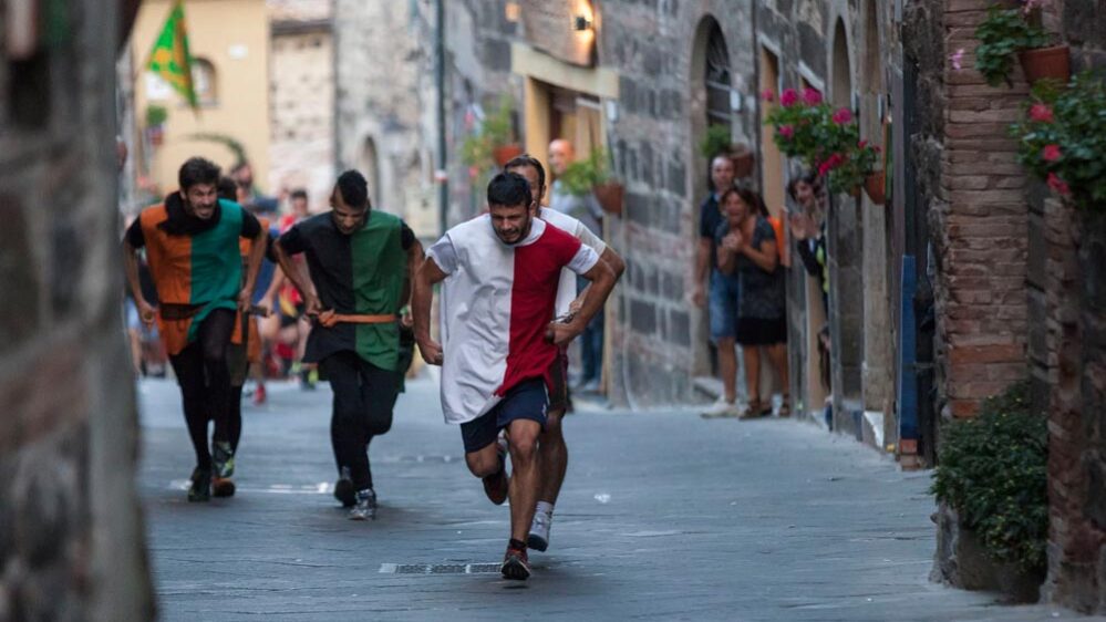 A Radicofani un palio dedicato alla Madonna delle Vigne. Le quattro contrade del suggestivo borgo medievale si sfidano prima nel tiro coll’arco poi nella corsa per le tortuose vie dell’incantevole borgo.