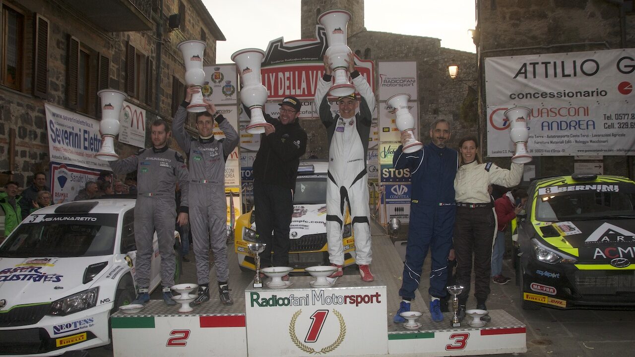 Inizialmente la gara aveva visto Marchioro in evidenza ma nella terza prova il forte pilota greco Papadimitrou lo ha sopravanzato portandosi in testa alla gara ed ha incrementato prova dopo prova la leader ship della stessa. Marchioro successivamente ha dovuto abbandonare la gara per un’uscita di strada e si sono fatti avanti Carella-Bracchi su Skoda Fabia R5 e Maselli-Danesi invece su Hyundai I20. La bagarre è rimasta accesa fino alla fine e solo dopo la disputa dell’ultima ed impegnativa prova di Radicofani il verdetto ha visto Carella cogliere la piazza d’onore davanti all’ingegnere da corsa Maselli che sta prendendo sempre più confidenza con la Hyundai. La quarta piazza è stata appannaggio di Donetto-Giatti con una Skoda ed analoga vettura per gli sloveni Novak-Vihtelic che hanno ben interpretato la nuova vettura a disposizione. Gara in crescendo invece per il sammarinese Vagnini che con Baldazzi esordiva su terra con la Skoda Fabia, nonostante lo stop forzato di un paio di mesi per problemi fisici ed alla fine è riuscito a cogliere la sesta posizione assoluta davanti a Cobbe-Turco su analoga vettura. Due Ford Fiesta R5 guadagnano l’ottava e nona posizione assoluta in sequenza gli aretini Squarcialupi e Romagna-Lamonato. Chiudono i top ten Versace-Caldart su Skoda Fabia. Da evidenziare la buona prestazione della giovanissima Tamara Molinari che con Giacomo Ciucci è di poco sotto i top ten ed undicesima piazza assoluta.