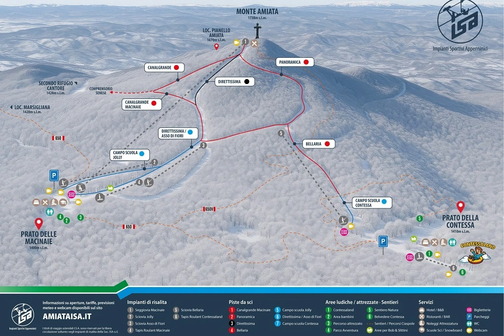 La Società ISA – Impianti Sportivi Appenninici è felice di pubblicare la nuova mappa degli impianti e delle piste dell’area sciabile Contessa – Macinaie, realizzata con l’obiettivo di rappresentare in modo più chiaro, aggiornato e aderente alla realtà la rete di impianti e tracciati attualmente fruibili. Si legge nel comunicato di ISA: