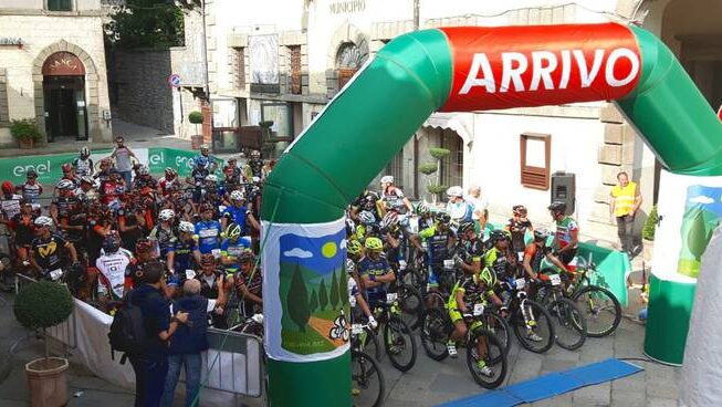 Il percorso: visti gli apprezzamenti sulla scorsa edizione, l’itinerario della gara, per la maggior parte dei tratti, sarà lo stesso dell’anno precedente con alcune variazioni migliorative per la sicurezza dei partecipanti. La gran fondo si compone di due percorsi: uno lungo di 43 km e 1400 metri di dislivello ed uno corto di 25 km e 600 metri di dislivello. Da piazza Garibaldi, attraverso la strada provinciale i ciclisti percorrono 2 km in salita, per arrivare al paese di Bagnore, entreranno poi nel bosco di castagni dove ad attenderli ci sarà il bike park composto da strade bianche e single track con salite e discese. Successivamente attraversando il sottopasso della strada provinciale “Il tubo” una discesa tecnica ci porterà alle pendici del centro abitato di Santa Fiora, dove da qui i ciclisti scenderanno ancora passando accanto al misterioso e suggestivo Sasso di Petorsola e percorrendo un sentiero in discesa arriveranno al fiume Fiora. Qui, dopo aver guadato il fiume, ci sarà la deviazione tra il giro corto e quello lungo. Il giro corto prosegue in direzione Santa Fiora e attraverso una salita abbastanza impegnativa raggiunge la Peschiera per poi continuare a salire lungo il centro storico del paese fino all’arrivo in piazza Garibaldi. Il giro lungo invece prosegue a destra lungo la strada provinciale “Santa Fiora -Pitigliano” per poi salire attraverso strade bianche al paese di Selva. Da qui comincia una discesa a tratti tecnica che ci porterà in località Fornacina e poi sullo stesso tracciato del giro corto, alla Peschiera e infine in piazza Garibaldi.