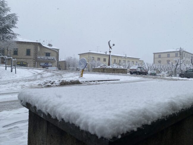 Oltre 5 i centimetri di neve sui paesi. Una forte nevicata si sta abbattendo sulla parte alta della montagna