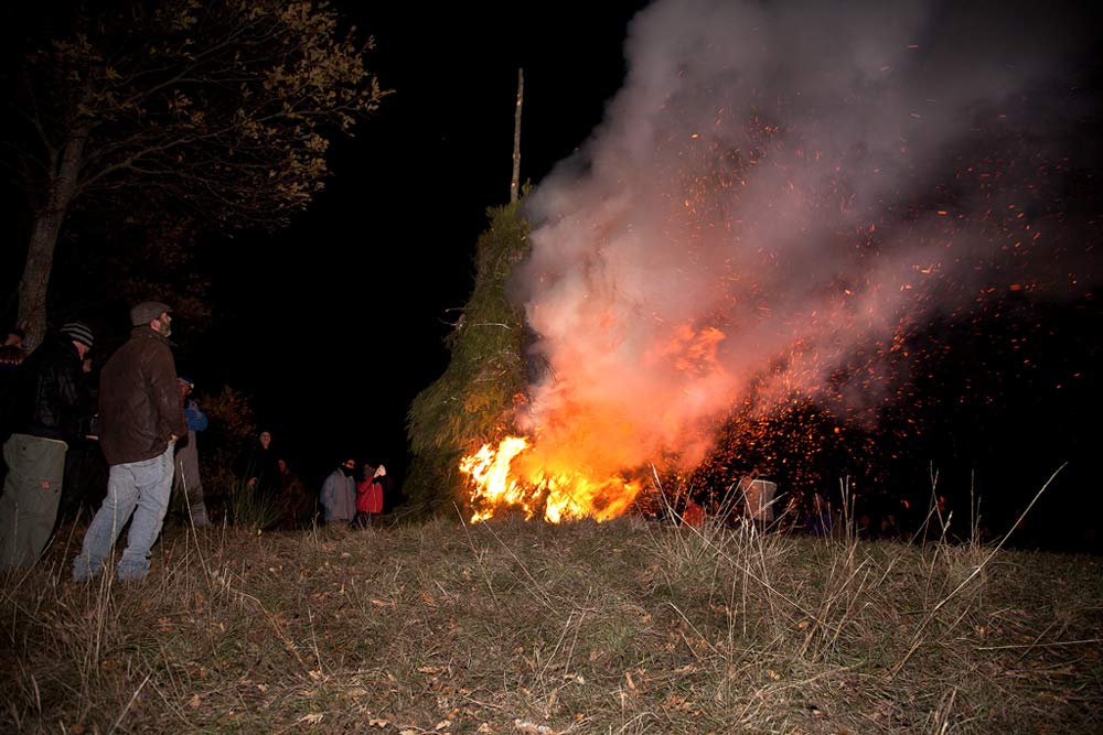 E’ il momento esatto in cui a Santa Caterina si festeggia il santo protettore. La manifestazione richiama nella piccola borgata amiatina un buon numero di turisti perché è durante questo evento che molti cittadini, costretti ad emigrare per lavoro, tornano nelle proprie case. Ai riti religiosi si uniscono altri eventi come ad esempio il tradizionale tiro dello stollo, un gioco che trova le sue radici nei lontani tempi che furono. Il momento centrale della festa coincide con l’appuntamento con la Focarazza- Lo spettacolo è all’imbrunire, quando a illuminare Poggio Le Forche sono solo le fiamme che bruciano le frasche secche ma non lo “stollo”, la contesa si fa presto viva e laddove non esistono regole vige un solo ordine: portare dentro alla propria contrada “Lo stollo”. Quella della “Focarazza” di Santa Caterina, piccolo borgo nel comune di Roccalbegna, è una tradizione che è arrivata intatta dal sedicesimo secolo fino ai giorni nostri, conservata gelosamente dagli abitanti di questo paese che ogni 24 novembre si impegnano a rievocarla arricchendola di spirito, passione e cultura.