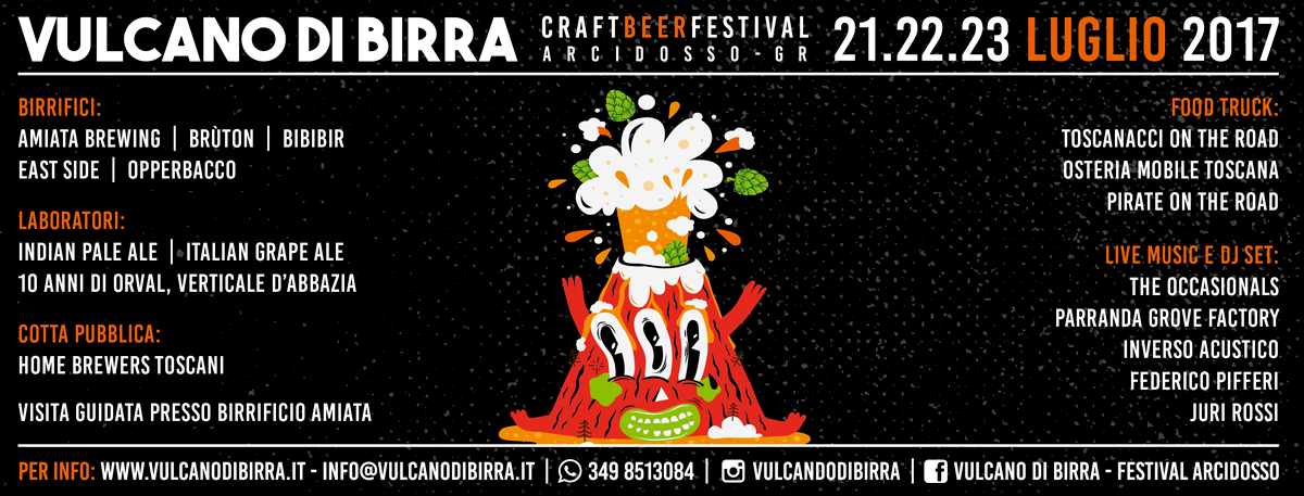 Il conto alla rovescia per “Vulcano di Birra” è iniziato. Da venerdì 21 a domenica 23 luglio il Parco del Tennis di Arcidosso, ex Summer Time in via Tibet, ospiterà una “tre giorni” en – plein- air, unica nel suo genere, completamente dedicata al mondo delle birre artigianali.