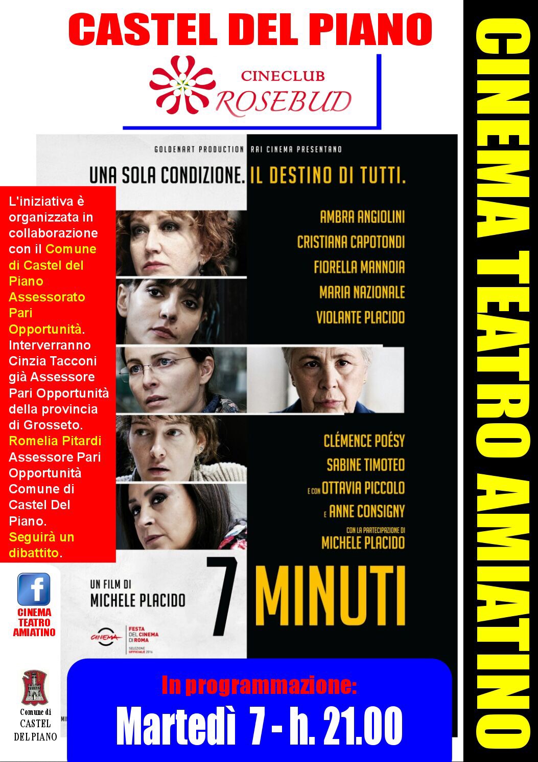 L’Amiata si prepara all’otto marzo, festa delle donne. Non solo cene, feste e brindisi, non solo mimose ma anche eventi in grado di costruire una consapevolezza su quello che è il grave disagio della violenza sulle donne. A Castel del Piano, l’assessorato alle pari opportunità si è impegnato ad organizzare per la sera del 7 marzo la proiezione di un film a tema. A partite dalle ore 21 sarà proiettata al cinema di Castel del Piano la pellicola “7minuti“. Il film sarà introdotto da un dibattito che vedrà l’intervento di Cinzia Tacconi, già assessore alle pari opportunità della provincia di Grosseto e l’attuale assessore alle pari opportunità del comune, Romelia Pitardi. Al termine della proiezione seguirà un dibattito. Il film è tratto da un fatto realmente accaduto in Francia e riguarda il lavoro femminile. All’ingresso la Proloco offrirà un mazzolino di mimosa a tutte le donne.