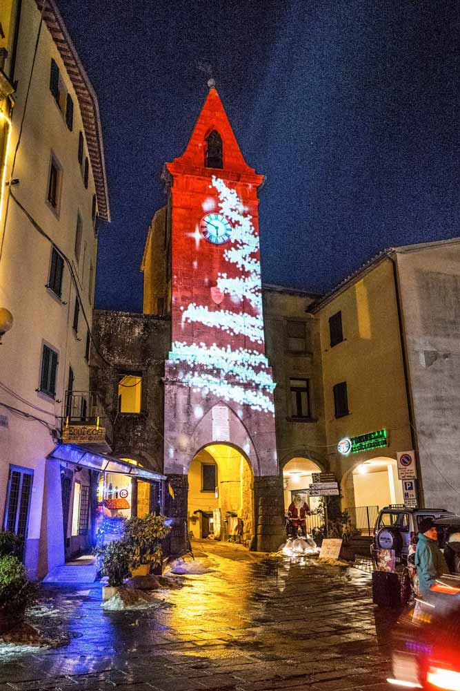 Natale di Luce” è un evento che prevede una rassegna di spettacoli ed allestimenti per festeggiare il periodo natalizio nel paese di Arcidosso. Ogni fine settimana il centro storico si trasformerà nell’ “Antico Villaggio del Natale” con le cantine del borgo scavate nella roccia allestite per raccontare il Natale rurale del passato. Qui si potranno osservare attività della Tradizione contadina, i giochi di una volta, degustare dolci tipici e vin brulé, intrattenendosi con spettacoli, concertini e letture di racconti e visitare i mercatini dell’artigianato e di prodotti tipici. Per tutto il centro storico sarà installato un impianto di filodiffusione che trasmetterà musiche natalizie e storie del Natale raccontate da Simone Cristicchi che accompagneranno i visitatori lungo il percorso. Nell’ufficio postale di Babbo Natale sarà possibile imbucare, con timbro e francobollo dell’Antico Villaggio, la letterina dei desideri destinata a Babbo Natale e alla Befana. Le letterine più belle saranno premiate in occasione di una giornata destinata a questo. I ragazzi dell’Istituto Tecnico “L. da Vinci” collaboreranno all’allestimento che renderà brillante il centro di Arcidosso con luminarie che loro stessi hanno disegnato, progettato e realizzato. Verranno proiettate, sulla facciata della Torre dell’orologio, spettacoli di video mapping e anche immagini create dagli alunni delle scuole elementari. Verrà installata la pista di pattinaggio sul ghiaccio che consentirà di raccordare la parte più antica del borgo con quella più recente.