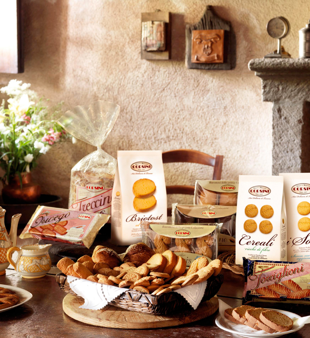I Cantuccini e le specialità della famiglia Corsini sono da sempre profondamente legate alla tradizione toscana e ben rappresentano, in ogni occasione, il piacere del rinomato “buon vivere toscano”. Una tradizione di dolcezze che nel tempo si è affermata anche per il Panettone, il Pandoro e le altre specialità di casa Corsini. Prodotte con gli ingredienti e la cura di una volta e proposte in confezioni speciali che sanno valorizzare il mondo Corsini ed il gusto e i sapori della Toscana più vera.